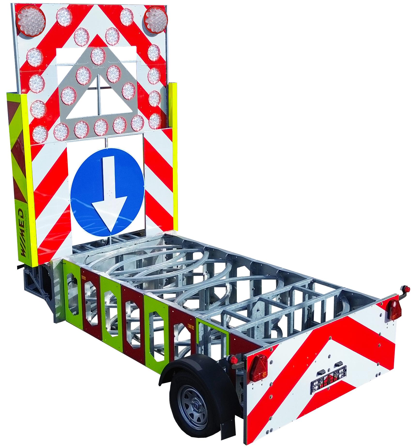 Systemy absorpcyjne oraz mobilne przyczepy informacyjne WIMED stanowią kompleksowe rozwiązanie dla bezpieczeństwa czynnego, chroniąc zarówno stałe elementy infrastruktury, jak i pracowników podczas robót tymczasowych. Osłony energochłonne, takie jak „EURO TRACC” oraz autorskie rozwiązanie „ElipSafe”, wykorzystują moduły absorbujące do progresywnego pochłaniania energii kinetycznej zgodnie z rygorystycznymi normami zderzeniowymi. Dopełnieniem oferty są Mobilne Przyczepy VMS wyposażone w czytelne wyświetlacze LED oraz autorskie lampy „Stokrotka”.