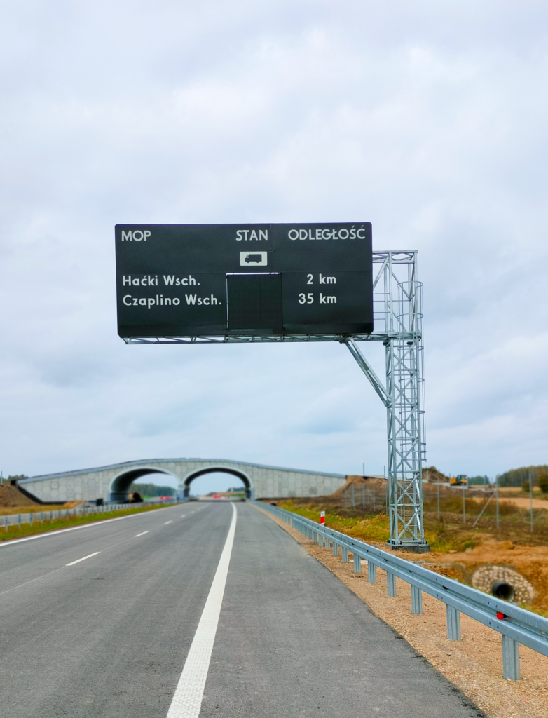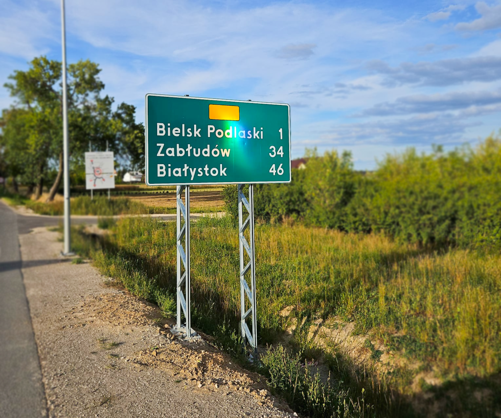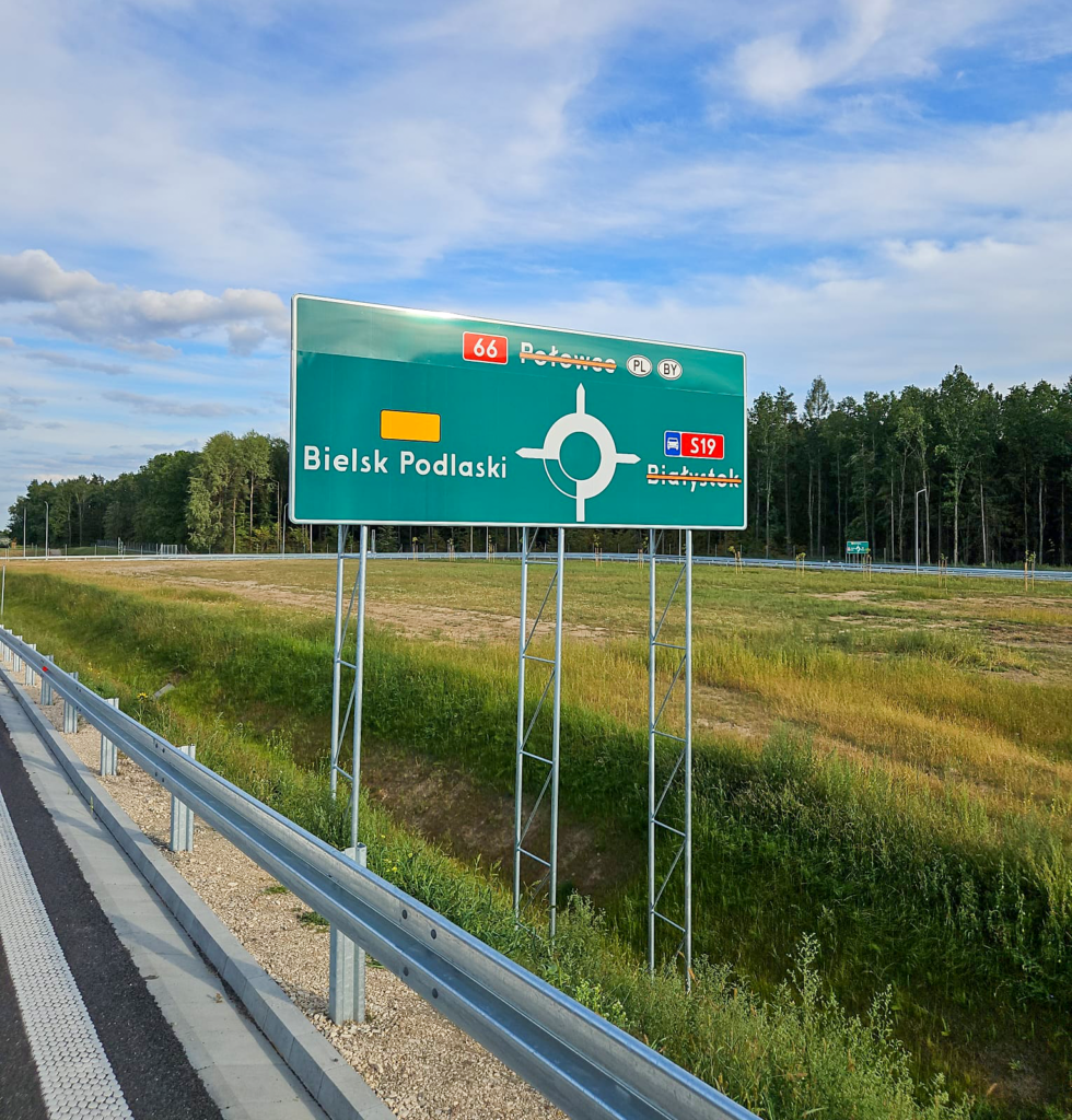 Odpowiadaliśmy za kompleksową realizację oznakowania pionowego, konstrukcji wsporczych (bramowych i wysięgnikowych) oraz montaż urządzeń BRD na odcinku Haćki – Bielsk Podlaski.