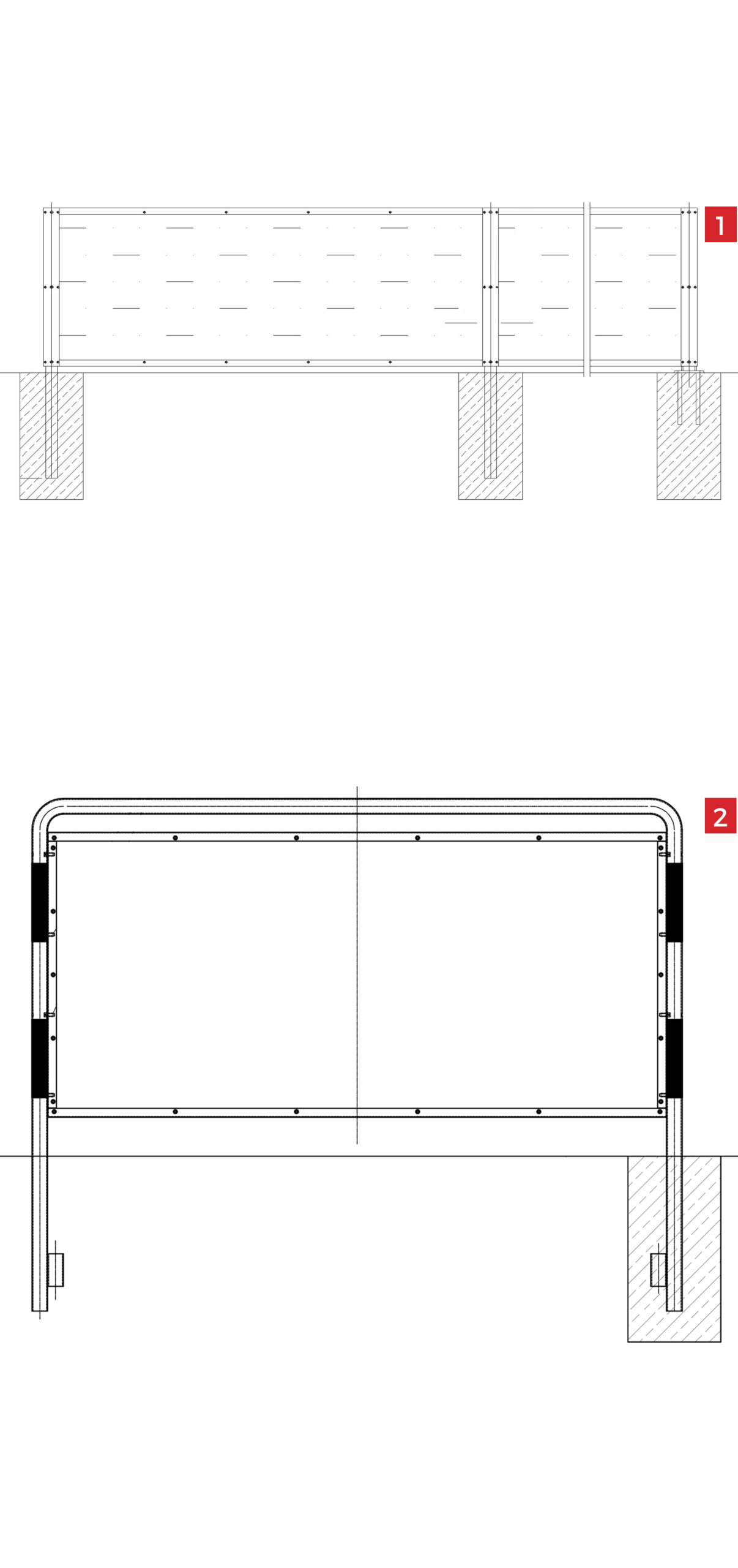 - Easy assembly, the barrier can be embedded in concrete in the ground or bolted to the substrate using a mounting foot.