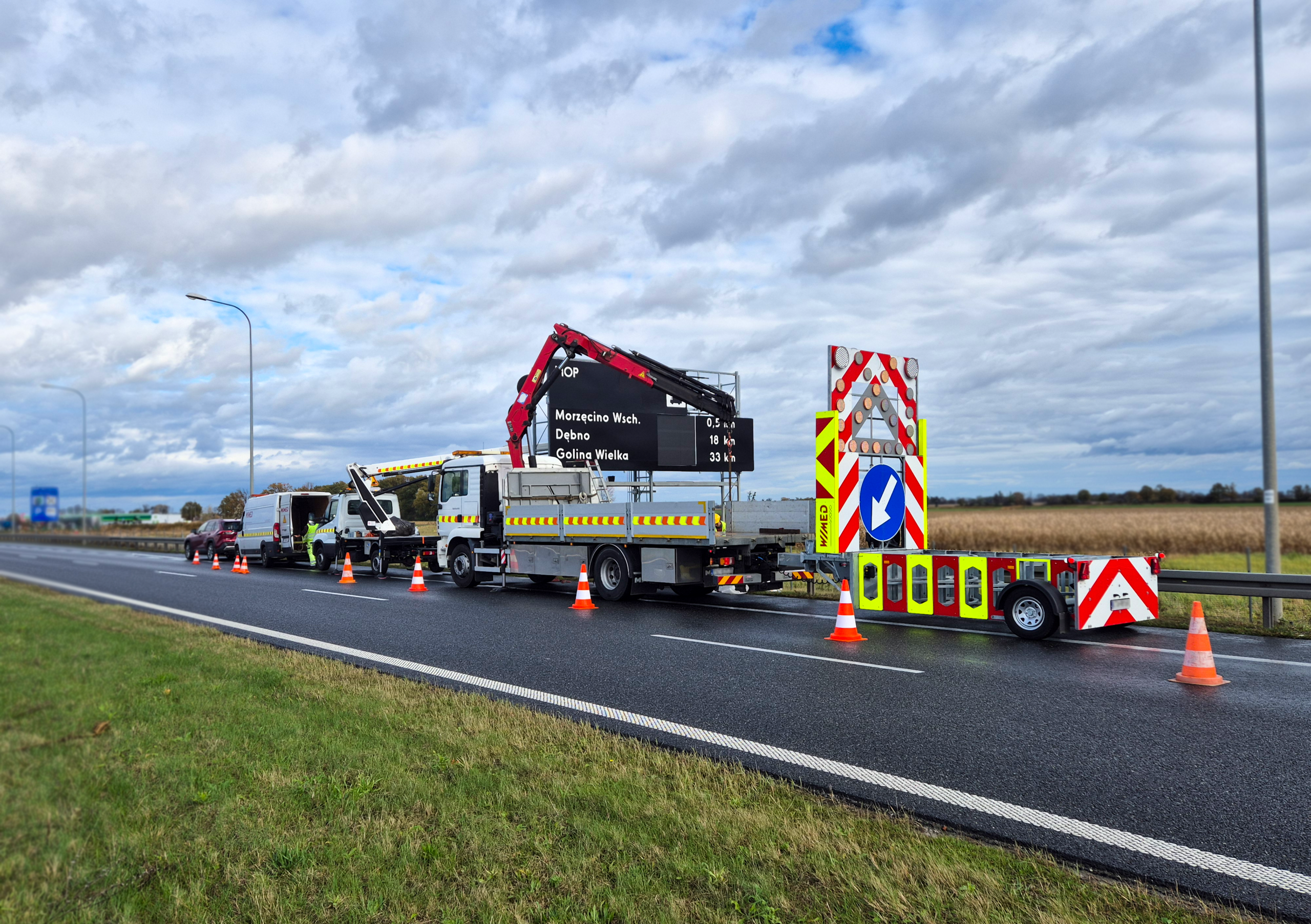 A passenger car ran into a road service which was securing road works in the traffic lane. Fortunately, the road service car was equipped with a crash cushion, which largely slowed the speed of the striking car and thus minimized the impact of a cruch. No one was hurt. The crash cushion, once again confirmed the importance of the use of energy shields, especially on highways with significant speed of the vehicles.