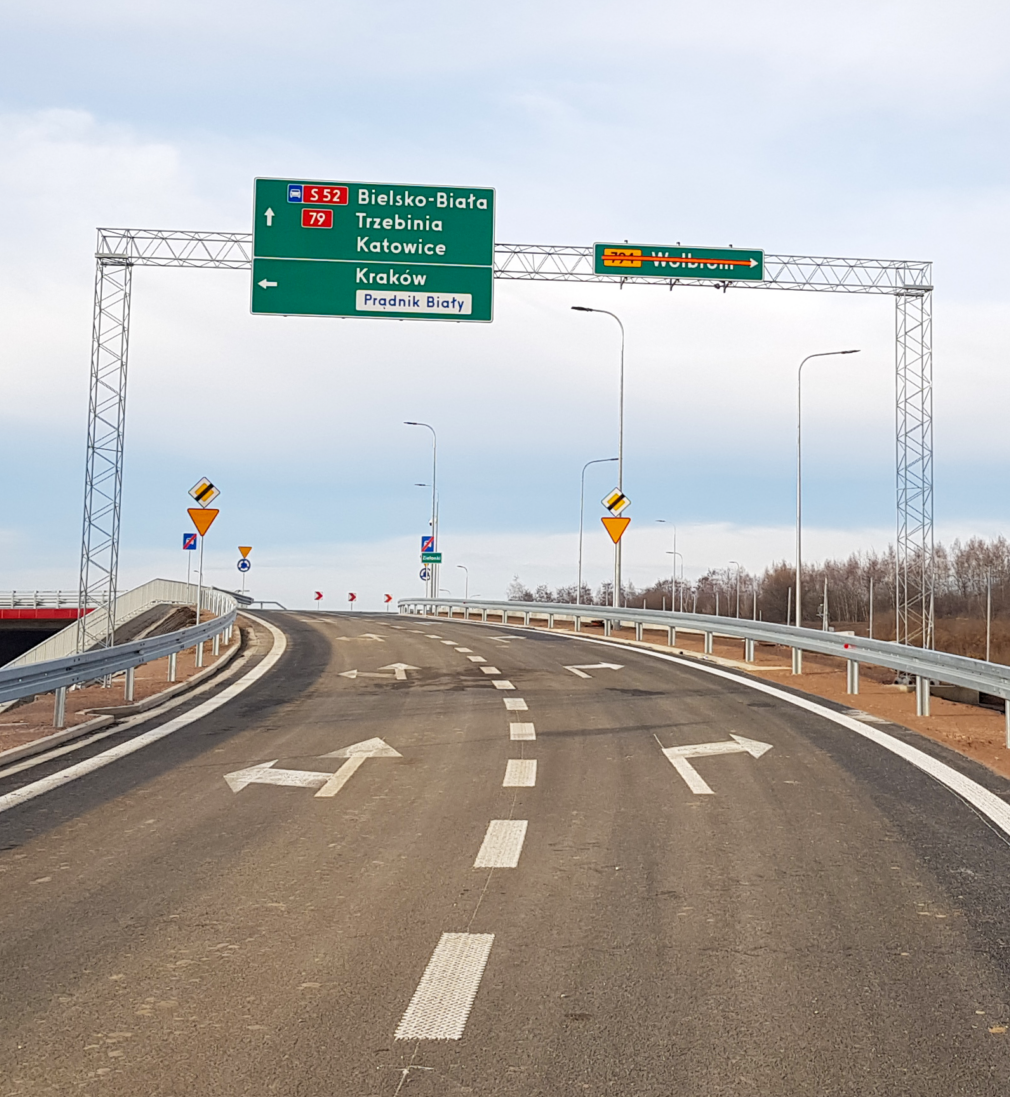 Gantries are a dedicated solution for large-scale signs mounted over multi-lane roadways, slip roads, and interchanges. They guarantee the highest level of safety on high-speed roads and in demanding locations, such as flyovers, where side-post structures are not feasible.