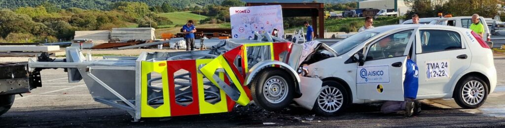 The ElipSafe Elliptical Mobile Crash Cushion is designed to protect temporary roadworks, service vehicles, and incident sites within the road lane, safeguarding personnel and equipment against the effects of collisions. Its innovative design—a proprietary solution developed by WIMED engineers—is fully hot-dip galvanized (per EN ISO 1461) and utilizes specially curved absorbing modules for progressive kinetic energy absorption. This performance is confirmed by full compliance with the CEN/TS 16786 standard, achieved during the very first attempt of every crash test.