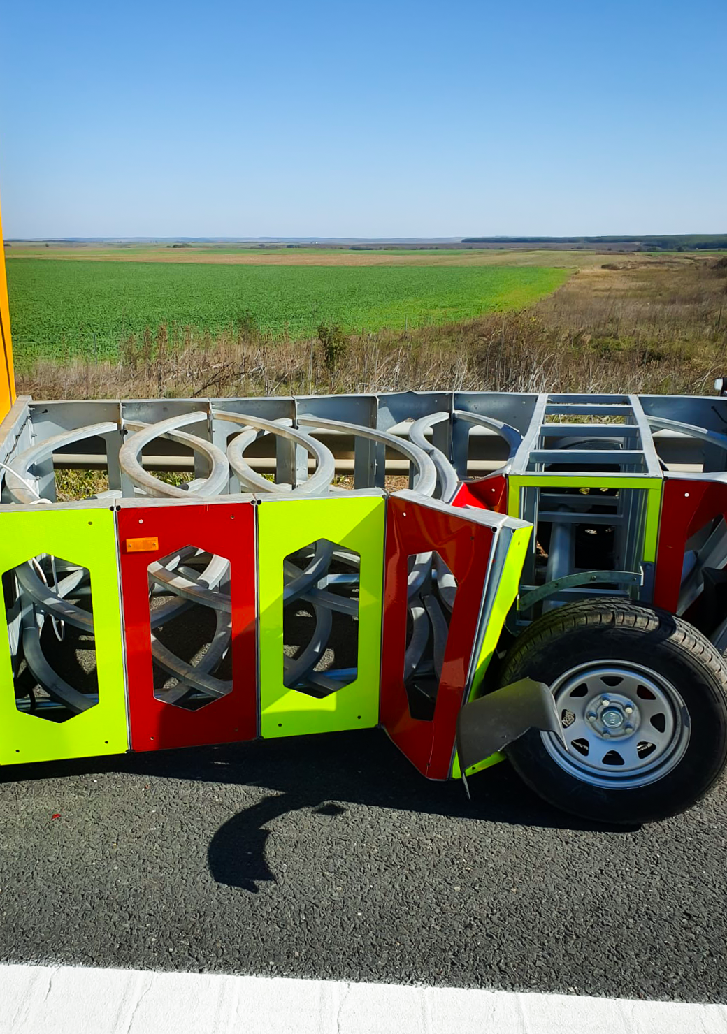 The ElipSafe Elliptical Mobile Crash Cushion is designed to protect temporary roadworks, service vehicles, and incident sites within the road lane, safeguarding personnel and equipment against the effects of collisions. Its innovative design—a proprietary solution developed by WIMED engineers—is fully hot-dip galvanized (per EN ISO 1461) and utilizes specially curved absorbing modules for progressive kinetic energy absorption. This performance is confirmed by full compliance with the CEN/TS 16786 standard, achieved during the very first attempt of every crash test.