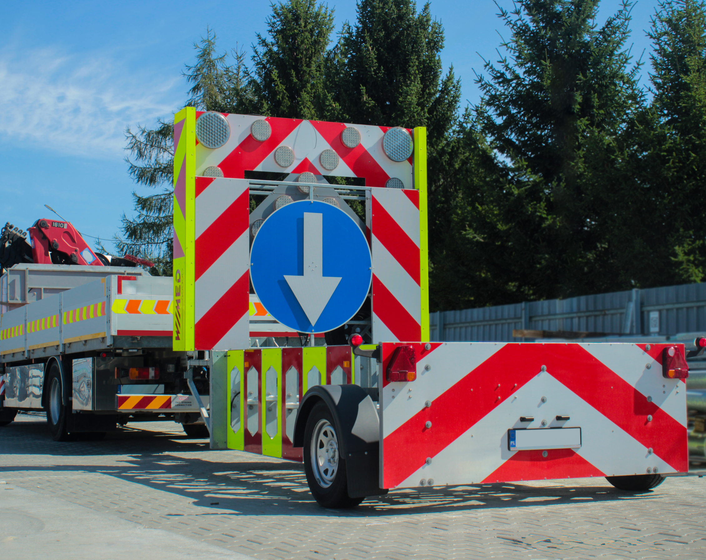 - Equipped with a U-26a signaling board featuring Type 2 (Class RA2) reflective sheeting and „Stokrotka” (Daisy) LED lamps, with remote lifting and programming capabilities.
