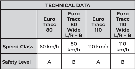 - Devices comply with the impact severity levels defined by the EN 1317-3 standard.