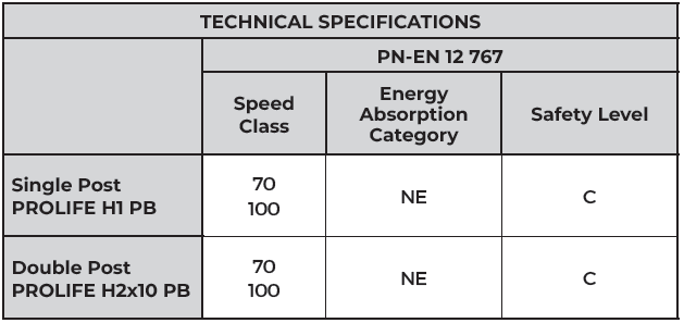 The PROLIFE post is a passive road safety element designed to minimize the consequences of traffic collisions. It features a specialized design that combines high stiffness with controlled deformation upon impact. Due to its passive safety characteristics, the post reduces the severity of injuries to vehicle occupants during a collision with the road sign structure. The product is placed on the market in accordance with the harmonized standard EN 12899-1.