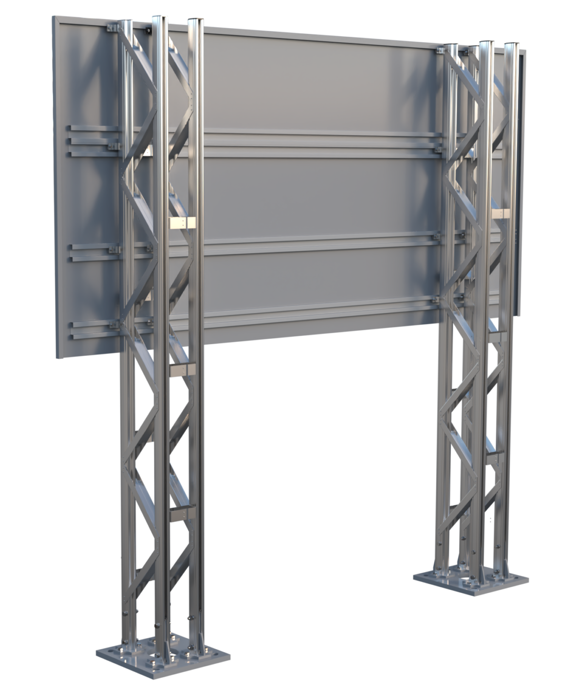 Konstrukcje umożliwiają montaż różnej wielkości tablic i znaków, sprawdzając się zarówno jako słupy boczne, jak i elementy składowe bramownic czy wysięgników.