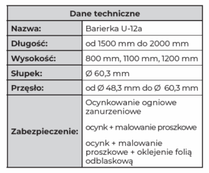 Barierki U-12a stosuje się w celu ochrony pieszych oraz rowerzystów. Oddzielają one np. jezdnie od chodników i uniemożliwiają przekraczanie dróg w miejscach niedozwolonych. Mogą również służyć do odpowiedniego kanalizowania ruchu pieszych.