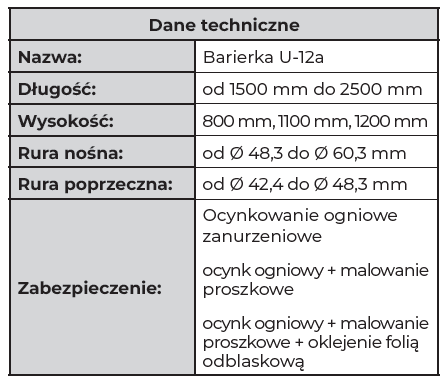Barierki drogowe U-12a stosuje się w celu zabezpieczenia pieszych lub rowerzystów przed wtargnięciem na jezdnię lub upadku ze skarpy.