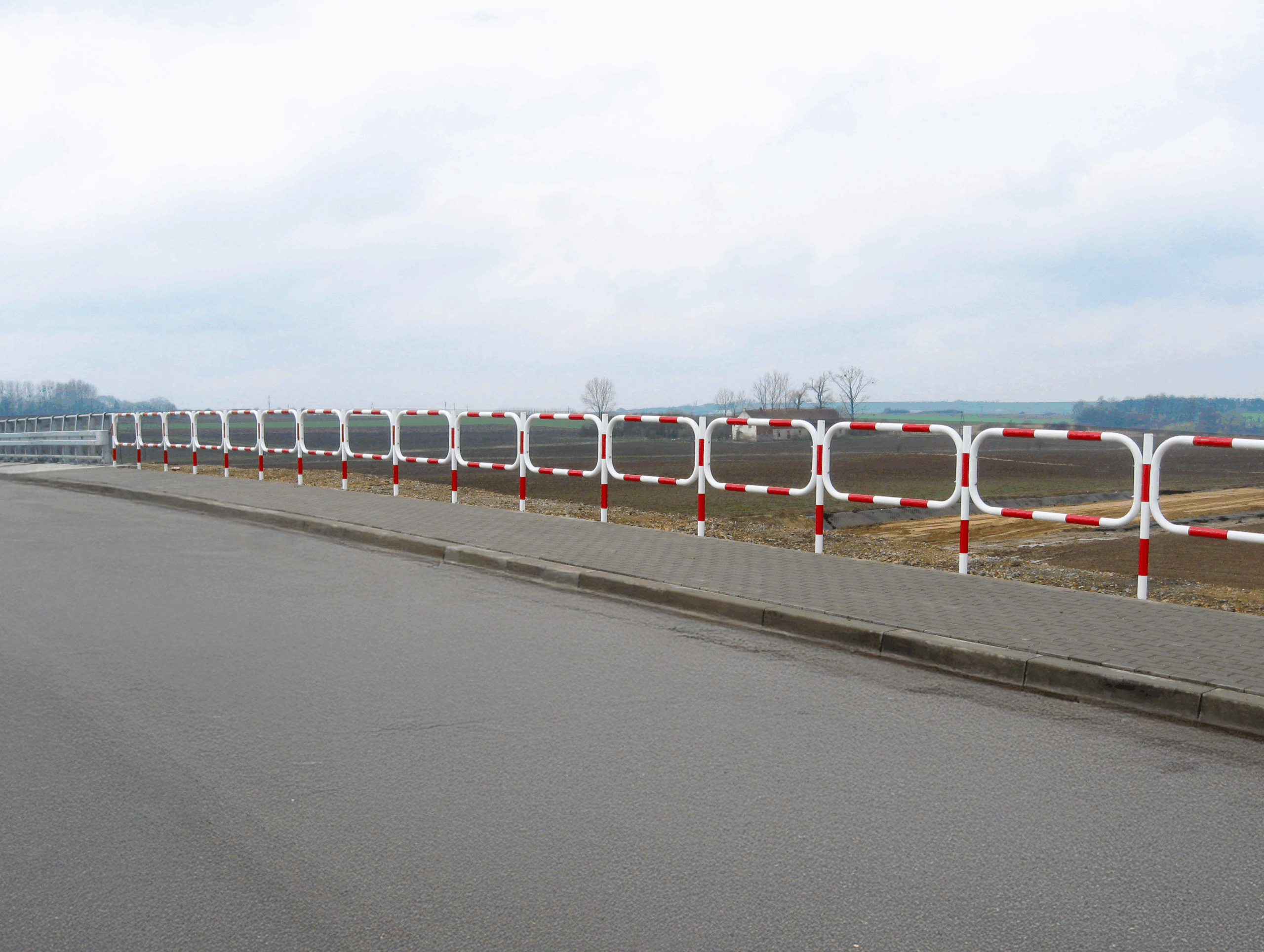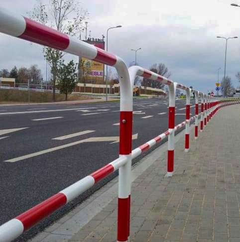 Barierki drogowe U-12a stosuje się w celu zabezpieczenia pieszych lub rowerzystów przed wtargnięciem na jezdnię lub upadku ze skarpy.