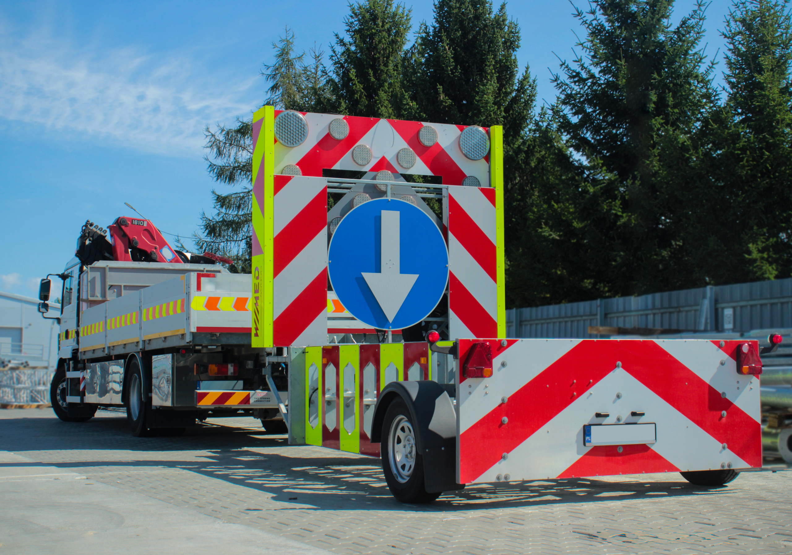 | Dobra widoczność | Konstrukcja łatwo dostrzegalna z dużych odległości, dzięki zastosowaniu folii odblaskowej typu 2-go i tablicy wyposażonej w lampy wczesnego ostrzegania |