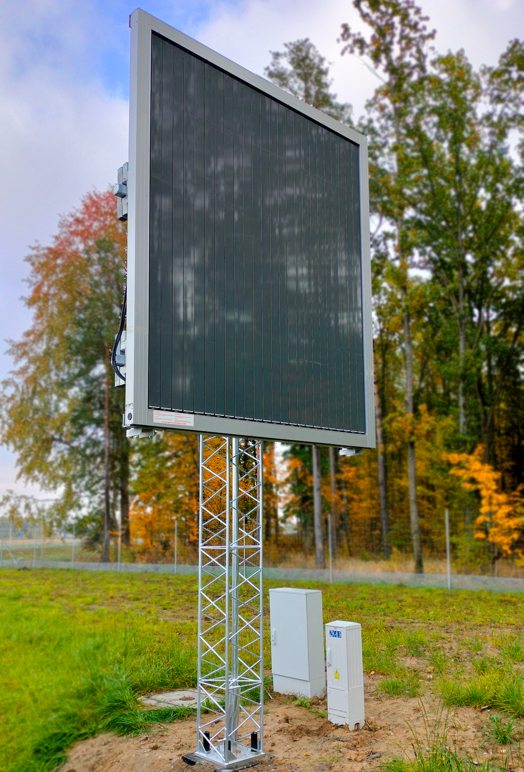 - Wysoka sztywność konstrukcji gwarantuje prawidłowe działanie mechanicznych elementów tablic pryzmatycznych oraz skutecznie chroni wrażliwą elektronikę znaków VMS przed szkodliwymi drganiami.