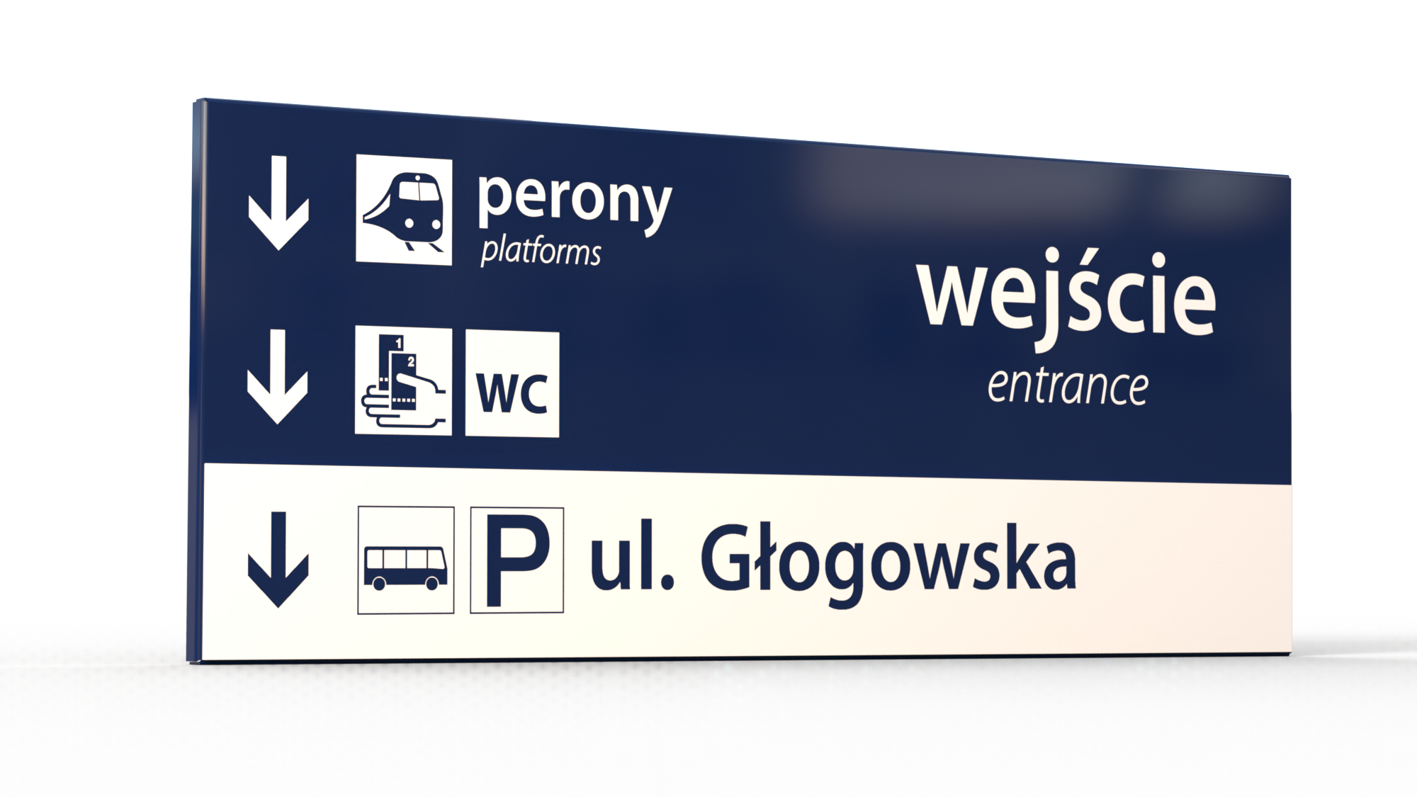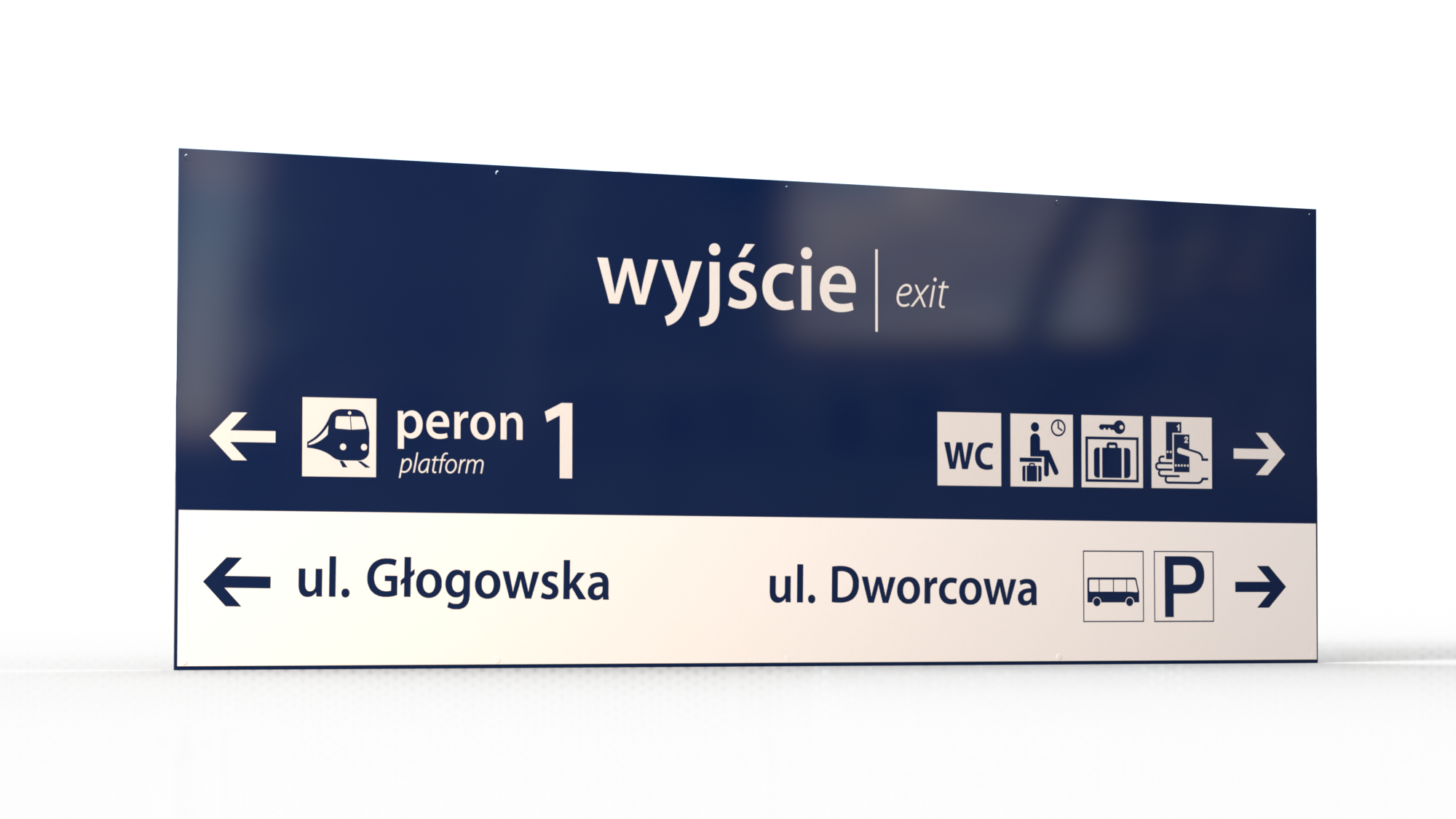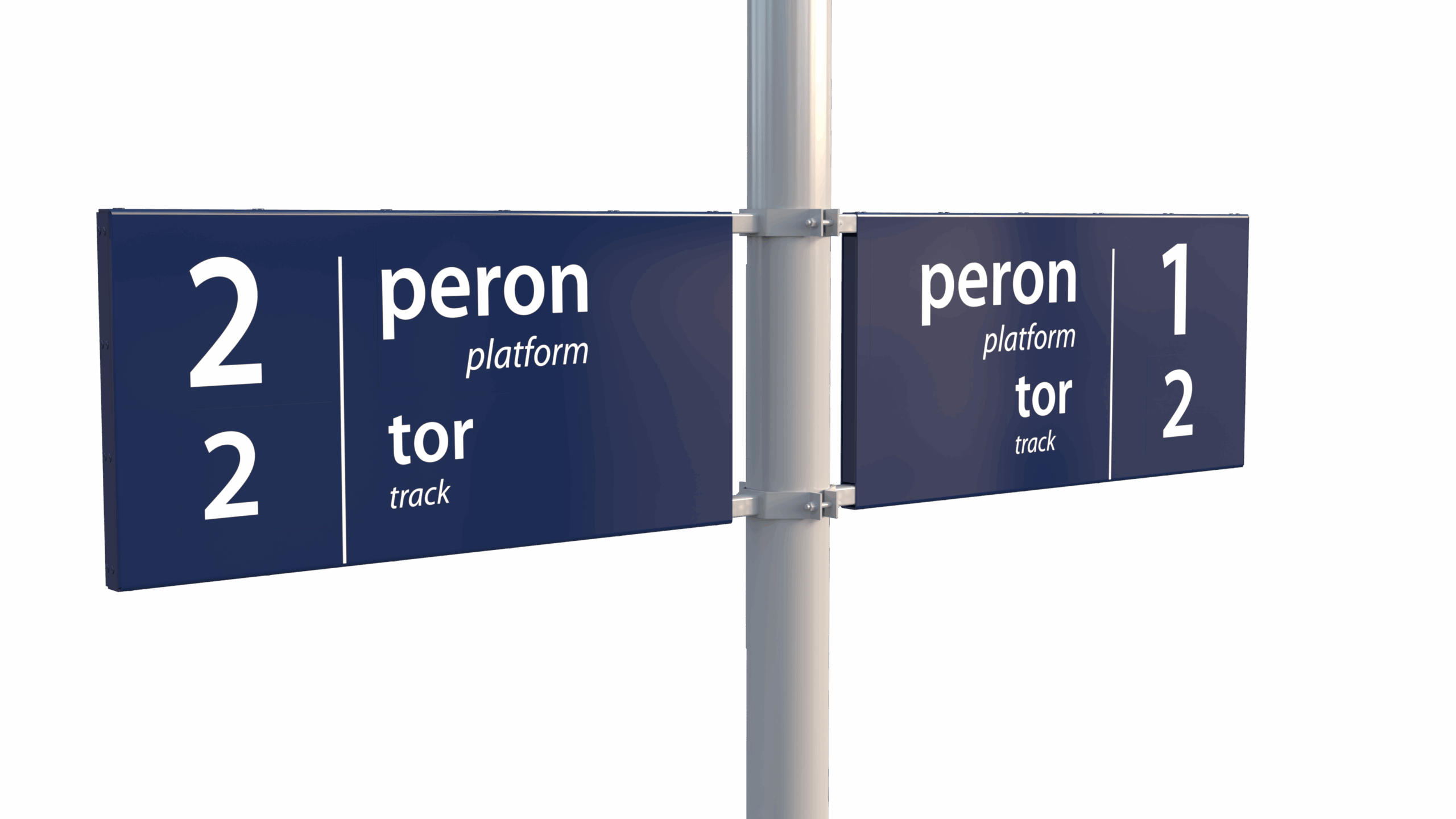 Oferujemy różne sposoby montażu przy zachowaniu pełnej zgodności z estetyką i standardami kolorystycznymi PKP – tablice w kolorze RAL 5003, konstrukcje stalowe RAL 7047. Liczba produkowanych tablic jest elastycznie dopasowywana do długości napisu, co zapewnia optymalną czytelność oznaczenia.