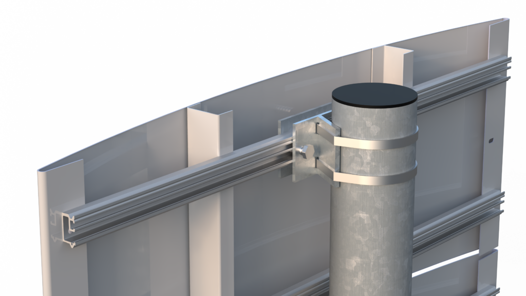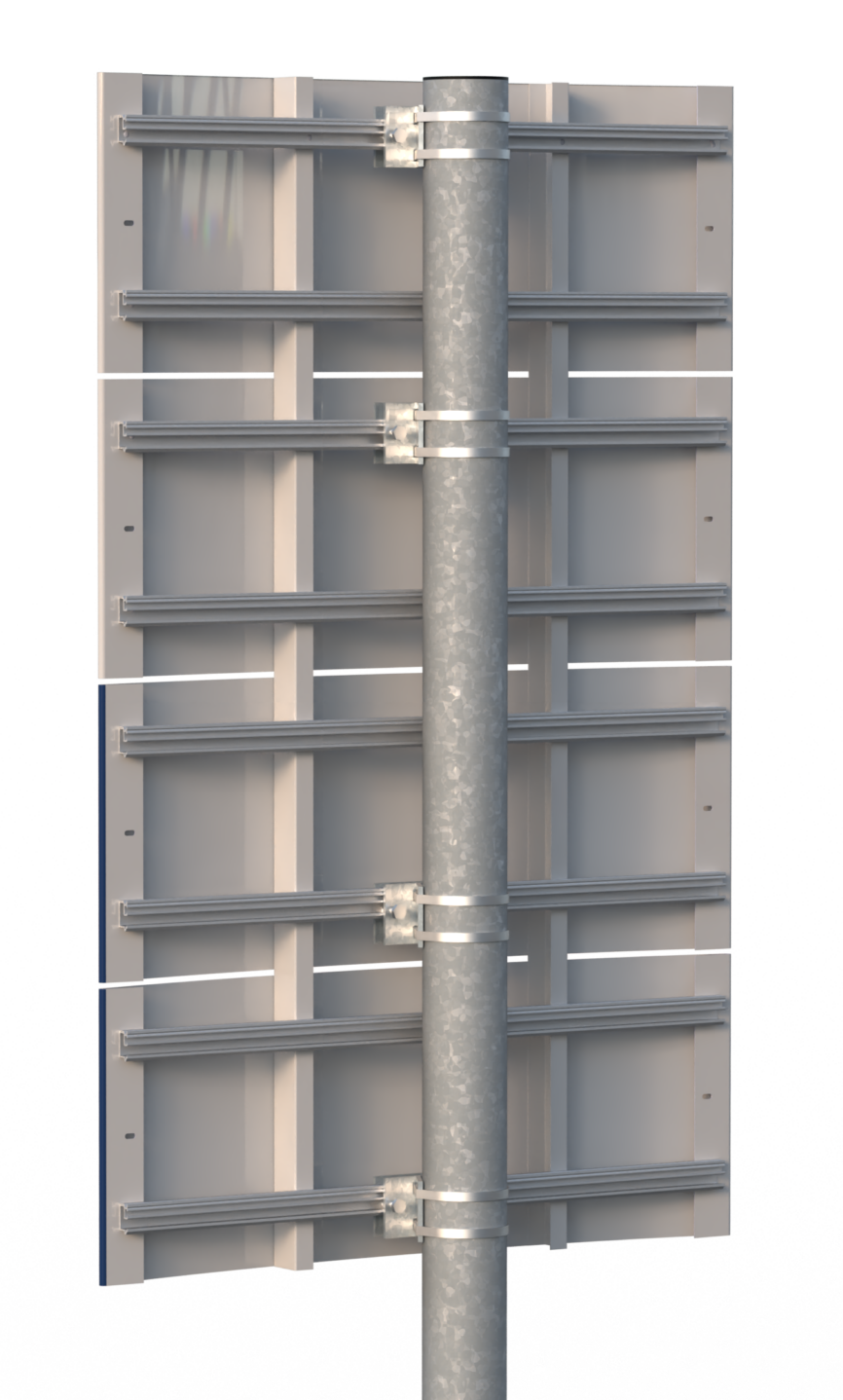 - Montaż do słupa poprzez dedykowany uchwyt z wykorzystaniem systemu taśm stalowych.