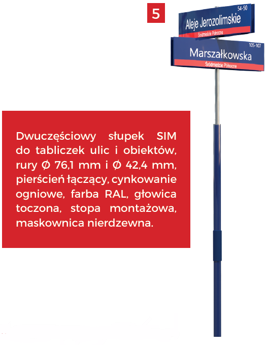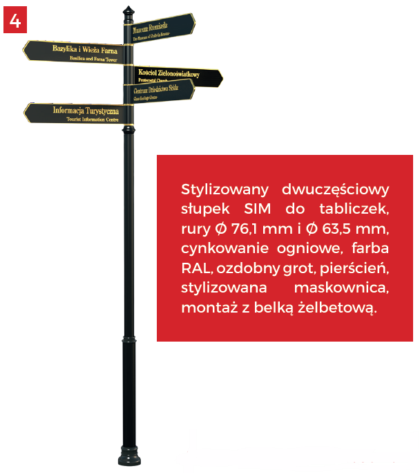 Nasze modułowe słupki SIM to fundament przejrzystej nawigacji miejskiej, ułatwiający sprawne dotarcie do kluczowych obiektów w każdym regionie. Dzięki unikalnej konstrukcji system pozwala na dowolną rozbudowę i wymianę informacji kierunkowej w każdym momencie, bez konieczności demontażu całego nośnika.
