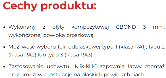 System Oznakowania Tymczasowego WIMED to kompleksowe rozwiązanie łączące ultralekkie materiały z błyskawicznym montażem. Zapewnia ergonomię pracy, tańszą logistykę i pełną stabilność konstrukcji. Znak kompozytowy CBOND jest lżejszy o 53% od tradycyjnego stalowego odpowiednika, dzięki grubości zaledwie 3 mm i wysokiej sztywności, stanowi idealny balans między trwałością a łatwością obsługi.