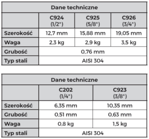 Jednorazowa zapinka montażowa ze stali nierdzewnej, przeznaczona do zaklepywania na taśmie. Umożliwia tworzenie zarówno pojedynczych, jak i podwójnych opasek, zapewniając trwałe i solidne mocowanie.