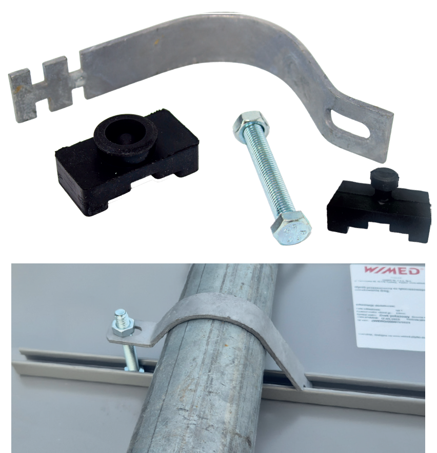 Uchwyty i elementy montażowe przeznaczone są do konstrukcji wsporczych PROLIFE produkowanych przez WIMED. Wykonane z cynkowanej ogniowo stali, zapewniają trwały i stabilny montaż znaków oraz tablic, zapobiegając ich przesuwaniu i obrotowi wokół słupa. W zestawie znajdują się odpowiednio dopasowane śruby, nakrętki, podkładki i tulejki dystansowe.