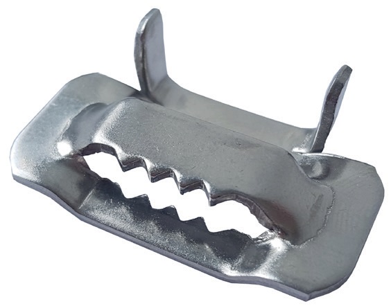 Jednorazowa zapinka montażowa ze stali nierdzewnej, przeznaczona do zaklepywania na taśmie. Umożliwia tworzenie zarówno pojedynczych, jak i podwójnych opasek, zapewniając trwałe i solidne mocowanie.