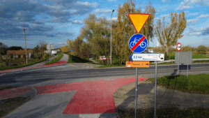 Znaki drogowe są estetyczne (podwójnie zaginane krawędzie na całym obwodzie, bez ostrych brzegów) i czytelne (wyraziste grafiki dostrzegalne z bardzo dużej odległości).
